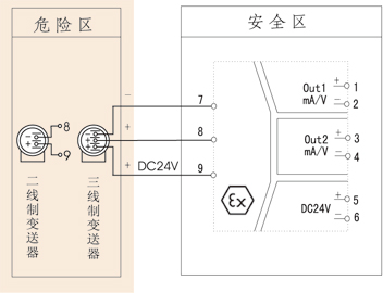 晶體管 | 型號舉例:NHR-A33-27-0/0。 變送器輸入檢測端隔離柵,輸入信號為:4-20mA,兩路輸出信號為:4-20mA。 |