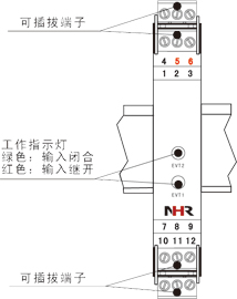 EVT1/EVT2:工作指示燈:當(dāng)輸入信號短接時,指示燈為綠色;當(dāng)輸入信號斷開時,指示燈為紅色。 35mm導(dǎo)軌式安裝,安裝時請注意卡位穩(wěn)定、牢固。 請盡可能垂直安裝,以利于儀表內(nèi)部熱量散發(fā)。