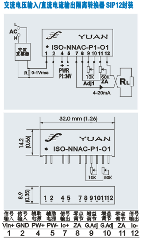 說(shuō)明: SunYuan ISO系列交流轉(zhuǎn)直流(AC/DC)信號(hào)變送器 IC,是一種將交流信號(hào)采集轉(zhuǎn)換成線性對(duì)應(yīng)直流信號(hào)的混合集成電路。該電路在同一芯片上集成了一組多路高隔離的DC/DC電源和一組AC/DC信號(hào)轉(zhuǎn)換電路。可以將傳感器采集到的0-1Vrms(50~60HZ)交流信號(hào)按比例轉(zhuǎn)換成4-20mA/0-10mA /0-20mA直流電流信號(hào)或0-1V/0-2.5V/0-5V/0-10V直流電壓信號(hào)。外接互感器后就可以組成單相或多相隔離變送器實(shí)現(xiàn)輸入與輸出信號(hào)之間的隔離。產(chǎn)品在電力遠(yuǎn)程監(jiān)控、儀器儀表、醫(yī)療設(shè)備、工業(yè)自控等領(lǐng)域廣泛應(yīng)用。