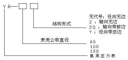 氨用壓力表YA-60 YA-100 YA150氨用壓力表適用于測量氨的液體和氣體的壓力和真空。亦可測量對碳銅、奧氏體不銹鋼和錫鉛類焊料等無腐蝕作用的介質的壓力和真空。