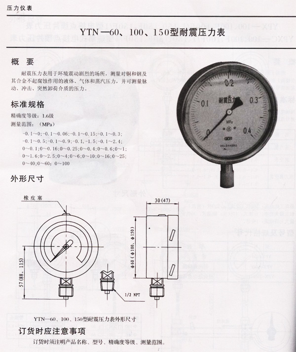 YTN系列耐震壓力表概述:耐震壓力表適用于環境劇烈振動場所,可耐受介質的脈動,沖擊及突然卸荷,儀表指示穩定清晰。廣泛應用于機械、石油、化工、冶金、礦山、電力等部門,測量對銅和銅合金無腐蝕性介質的壓力。