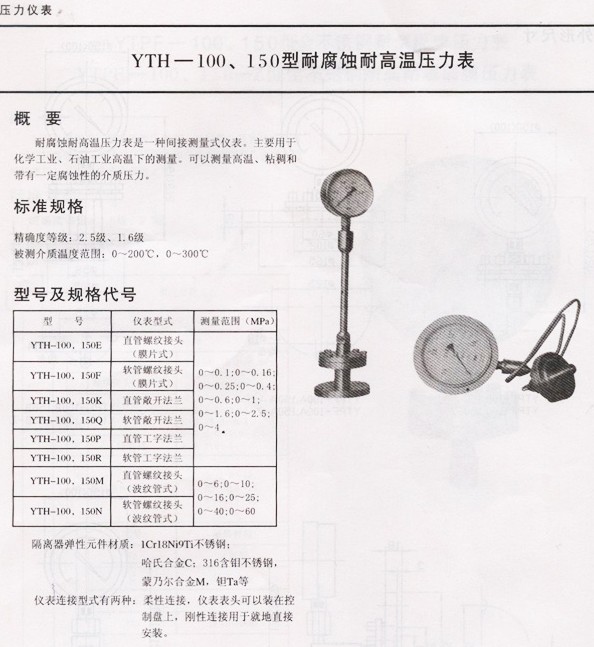 → 耐腐耐高溫隔膜壓力表
