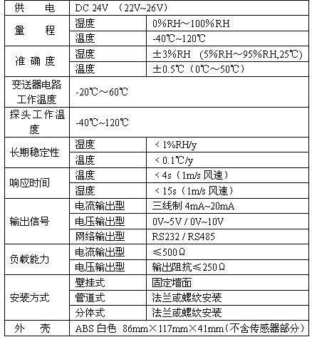 | 濕度測量范圍寬-40℃~120℃ 精度高 低溫票 響應速度快 體積小 安裝方便 性能穩定 使用壽命長 抗干擾能力強 傳感器保護網設計有效減小風速對測量的影響延長傳感器壽命 |