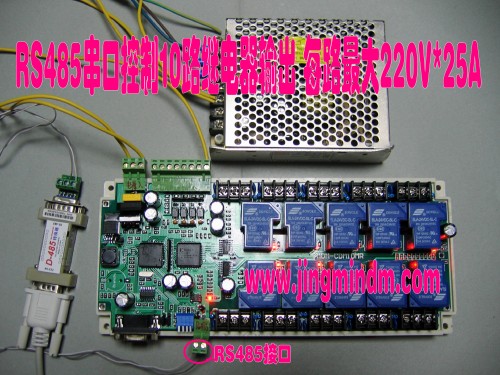 10路繼電器輸出,每路輸出承載最大電壓為220V,最大承受電流是25A;輸出采用特有的高頻信號濾除電路防止觸點打火,提高繼電器壽命;每路繼電器都引出一個常開點和常閉點,可控制10組不同電壓的開關;每路繼電器都有貼片式高亮度LED燈顯示繼電器工作狀態;