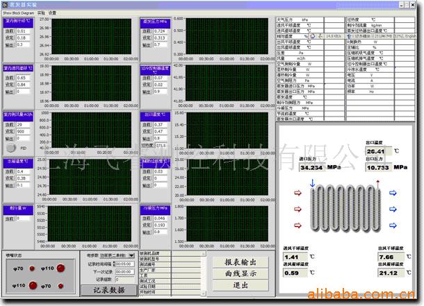 本實驗臺需要實現對換熱器(蒸發器,冷凝器)盤管,節流元件進行性能測試。測試對象包括各管路關鍵點的溫度,壓力等參數。換熱器試驗臺能對蒸發器、冷凝器、毛細管以及空調器整機等作實驗測試和評價,重點對標準工況下的性能參數進行測試評價,也可用于變工況評價與分析。該裝置既能測得兩器和毛細管在規定工況下的參數(如換熱量、風量、風速、進出口的溫度壓力流量等),也可以測得各部件的參數,如沿程的溫度、壓力分布、分路數的影響、制冷劑含油率的影響以及影響趨勢等,同時還可以將整機性能與空調器各部件的主要性能及影響一一對應測量出來。