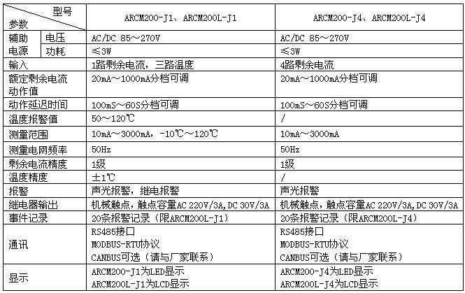 ● ARCM200L-J1、ARCM200L-J4具有事件存儲功能,報警器能夠記錄報警發生的時間、類型、參數,根據報警記錄可以分析現場的用電情況,為消除故障提供依據;