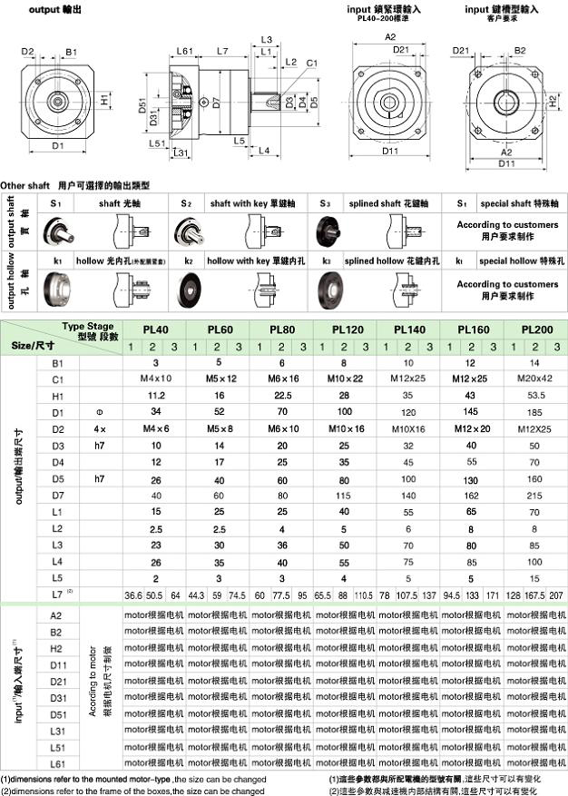 PL□K hollow output mounting dimensions PL□K空心孔輸出外形尺寸 |