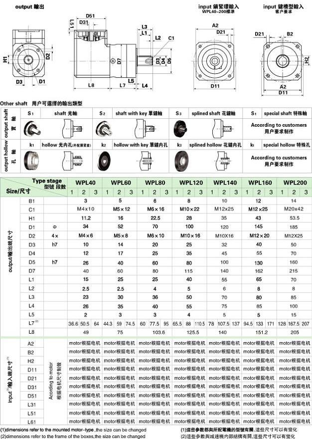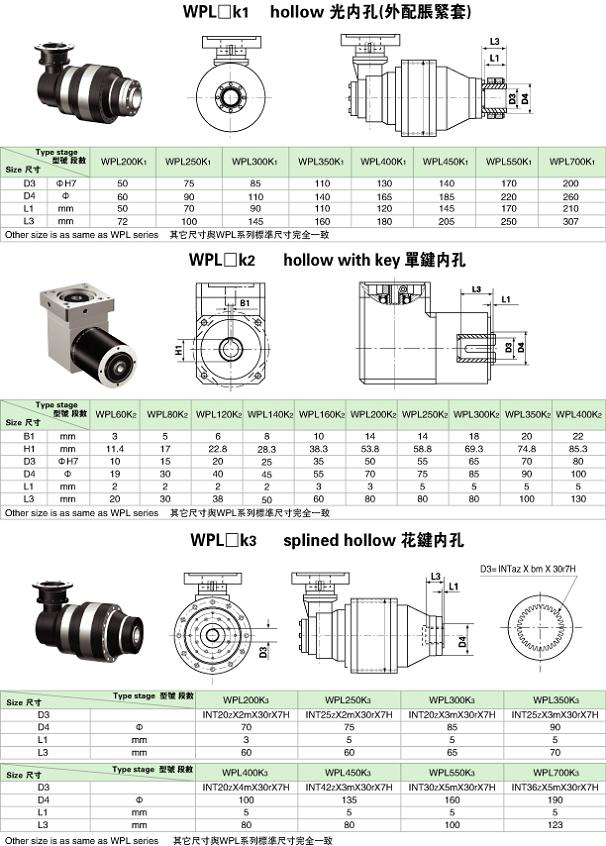 WPL□K hollow output mounting dimensions WPL□K空心孔輸出外形尺寸 |