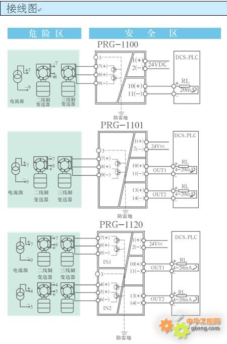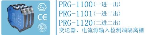 PRG-11□□是一款二線制,三線制變送器,電流源輸入檢測端隔離式安全柵,給危險區的變送器提供隔離電源,變送器產生的4-20mA信號(或電流源信號)從危險側隔離傳送到安全側,該產品需要獨立供電,電源、輸入和輸出間全隔離。