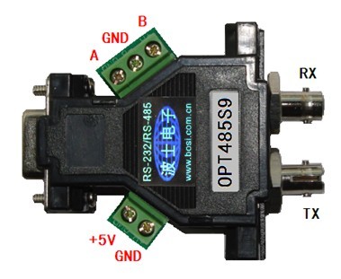 波仕電子配套提供各種長度單芯、雙芯光纖以及ST、FC、SC接頭。 注意RS-232與RS-485不要同時使用。OPT485S9產品配套有5V電源(4.5 V到5.5V),產品功耗小于100mA。
