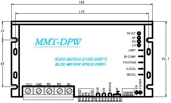 驅動器外形尺寸:L*W*H=180*96.7*60單位:毫米。