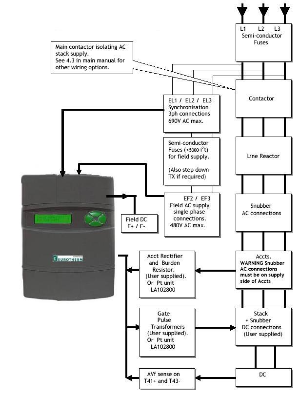 The PL/XD can be used with up to 690V AC on its 3 phase auxiliary supply inputs (EL1/2/3). The external