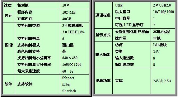 VA40根據不同的性能分為兩個型號:VA40和VA41。VA40可以連接最多達4個相機的輸入,而VA41卻同時可連接高達6個相機。VA41的處理性能是VA40的三倍。它們同時支持iNspect和Sherlock。