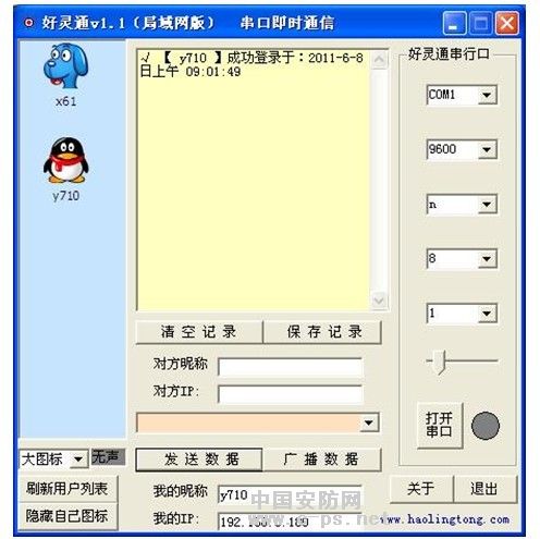 好靈通串口即時通信軟件是一種在局域網(wǎng)甚至互聯(lián)網(wǎng)內(nèi)實現(xiàn)串口即時通信的軟件。haolingtongV11是局域網(wǎng)版本。只要2臺或者多臺計算機(jī)位于一個局域網(wǎng)內(nèi),那么借助于好靈通軟件可以實現(xiàn)這些計算機(jī)的串口之間的即時通信,也可以實現(xiàn)透明傳輸和多機(jī)通信。好靈通V11同時是一款功能齊全的局域網(wǎng)聊天工具。