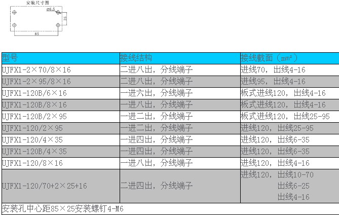UJFX1-120B/6×16 大電流分線端子