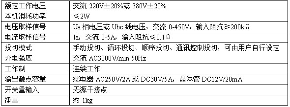 工作電源為AC220V,相電壓采樣,繼電器輸出