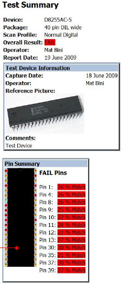 1)軟件可產(chǎn)生一詳細(xì)的測(cè)量報(bào)告, 包含集成電路相片。這份報(bào)告可用于深入分析好壞集成電路的差異具體原因。