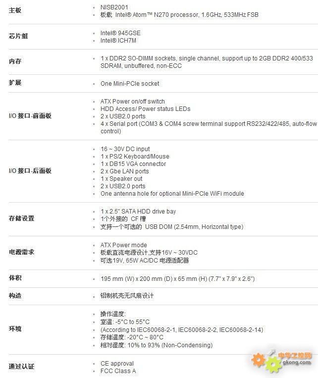 Intel® Atom8482; N270 1.6GHz 無風扇工業計算(fanless pc)