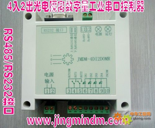 1、JMDM-COM4DI2DOMR是深圳市精敏數字機器有限公司自主研發的一款工業級高性能微型單片機可編程邏輯控制器,也叫6點數字量(I/O)串口控制器。