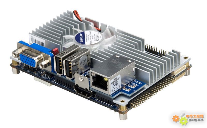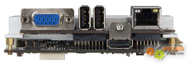 該產品采用附加 I/O 子卡的特殊設計,在板載原生 HDMI 接口外,補充增加一個VGA接口,一個千兆以太網接口和兩個USB2.0接口。其它功能包括:以 S/PDIF 支持 6 聲道 DTS 音效,通過板載針腳提供對 4 個附加 USB2.0 接口,一個LPC連接器,SMBUS連接器,PS/2 接口,音頻接口,LVDS,4 對數字 IO 接口和兩個UART 接口。