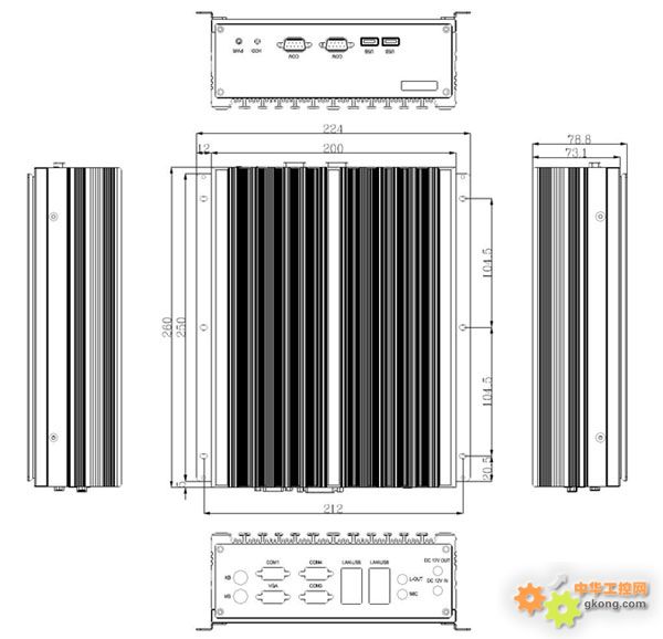 - VGA / 2千兆網口/ 4USB接口/音頻/ 5COM口