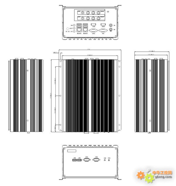 - VGA / 2個(gè)千兆網(wǎng)口/ 4USB / 音頻/ 5COM口