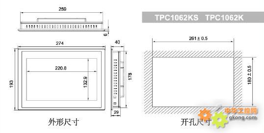 TPC1062K,是一套以嵌入式低功耗CPU為核心(主頻400MHz)的高性能嵌入式一體化觸摸屏。該產品設計采用了10.2英寸高亮度TFT液晶顯示屏(分辨率800×480),四線電阻式觸摸屏(分辨率1024×1024)。