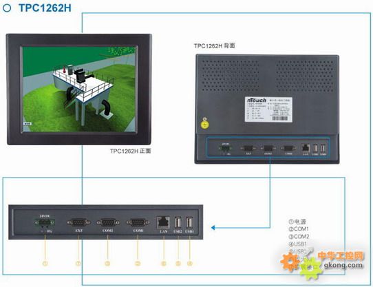 TPC1262H,是一套以嵌入式低功耗CPU為核心(主頻400MHz)的高性能嵌入式一體化工控機。該產品設計采用了12.1英寸高亮度TFT液晶顯示屏(分辨率800×600),四線電阻式觸摸屏(分辨率1024×1024),以及具有良好的電磁屏蔽性,美觀堅固的鋁合金結構。