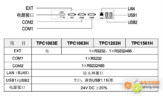 1×RS232、1×RS232/485 |