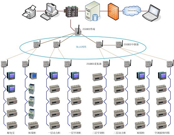 圖3 ZIGBEE(物聯網)無線網絡電能管理系統解決方案組網示意圖