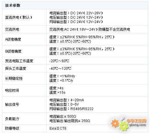 產品特點濕度測量的溫度范圍寬(-40℃~+120℃)精度高低漂移響應速度快體積小安裝方便性能穩定使用壽命長搞干擾能力強獨有的過濾網的設計,可以有效的減小風速對測量的誤差,延長探頭的使用壽命。達到防爆產品性能要求,防爆等級為ExiaIICT6CE認證