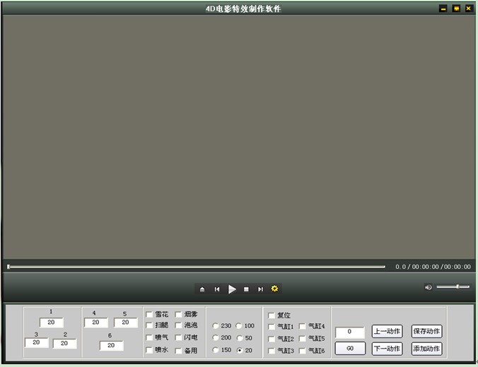 客戶端功能:用于播放已編輯好、帶有特效的4D電影,供觀眾欣賞,沒有編輯功能。