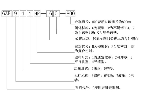 錐形閥型號編制,在遵照國內外慣例基礎上,采用特殊與通用閥相結合的方式編制。