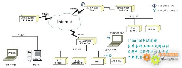 該系統通過Internet公共網絡,通過賽遠的S-link技術,進行遠程的工業數據安全加密,并進行協議上的轉發,實現遠程PLC和本地控制PC之間的互相通訊,可以實現數據采集,程序上下載和在線診斷、維護。