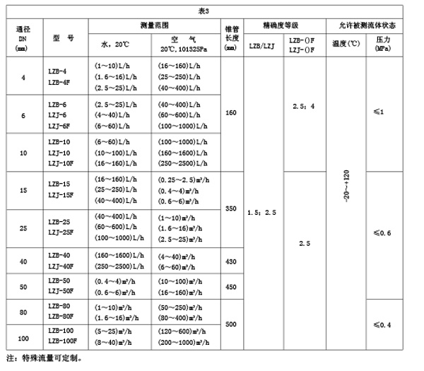 如需不銹鋼內(nèi)襯PTFE,則型號為LZB-( )BF(或BoF),需定做。