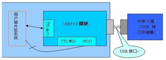 說明:采用USB118AD模塊直接連U盤。具體接口方式需查USB118AD相關資料。