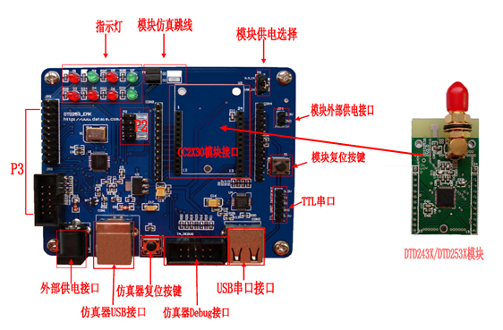 初級方案,配備2個DTD253(CC2530)開發模塊