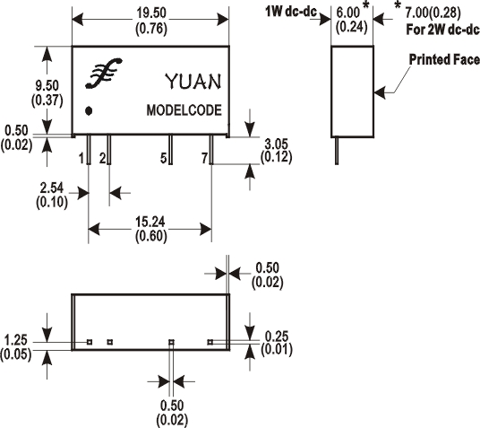 SIP 封裝尺寸 1W:19.60 x 6,00 x 10,00 mm