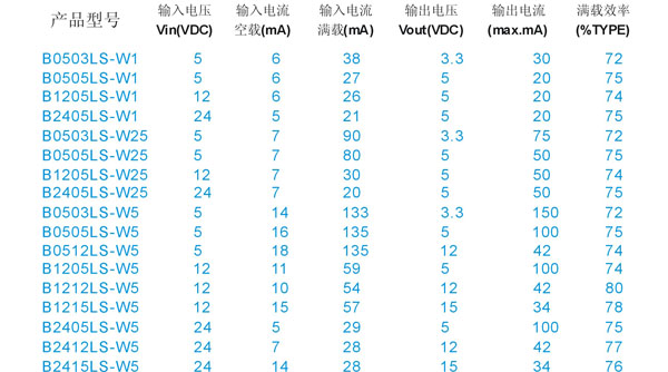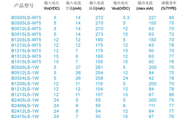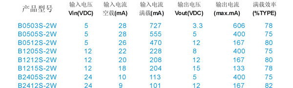 B LS系列 BXXXXLS-1W/BXXXXS-2W 1KVAC隔離 非穩壓單輸出
