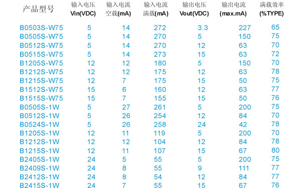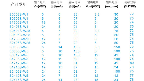 B S系列 BXXXXS-W1/1W 1KVAC隔離 0.1W ~1W 非穩壓單輸出 BXXXXS-W1/1W DC-DC模塊電源主要用于RS232/485、CAN總線等數字接口電源隔離。在安防快球監控、計算機485接口智能控制等行業廣泛應用。