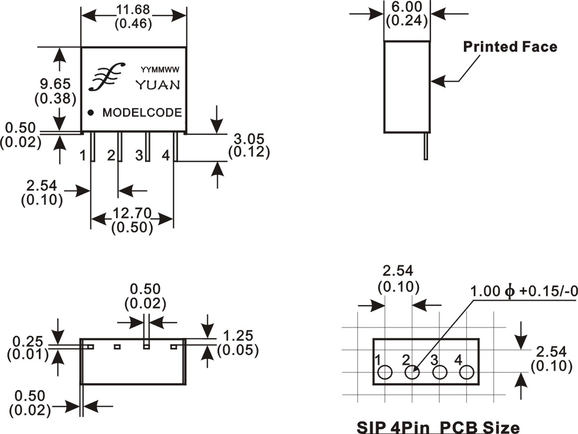 SIP 封裝尺寸 11.68 x 6,00 x 10,16 mm