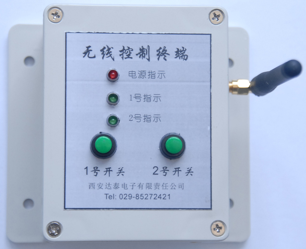 某自來水廠的一個控制室,通過控制終端的按鈕,無線控制1500米以外的兩臺水泵啟停,并且將水泵的工作狀態(tài)反饋到控制室。