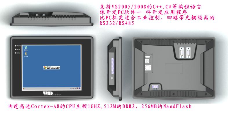 - 內建高速Cortex-A8的CPU主頻1GHZ,512M的DDR2,256MB的NandFlash,Windows CE .NET 6.0;