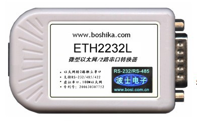 波仕ETH2232L微型以太網/2路串口轉換器秉承波仕轉換器的一貫特色,具有超小型的外形(80*23*47mm)、RS-232、RS-485、RS-422通用,可以虛擬成為本地COM串口(COM1-COM256)、無須修改已有的串口通信軟件。同時波仕贈送以太網-雙串口映射程序。波仕ETH2232L是世界上最小的、也是使用最簡便的以太網/2路串口轉換器、實現了以太網與2路串口的轉換。ETH2232L是波仕全新一代產品。支持100/10M以太網,自適應RJ-45直連線交叉線,POE供電,內部1000V變壓器電氣隔離。專利產品,謹防假冒!專利號:200630307752、200730098650
