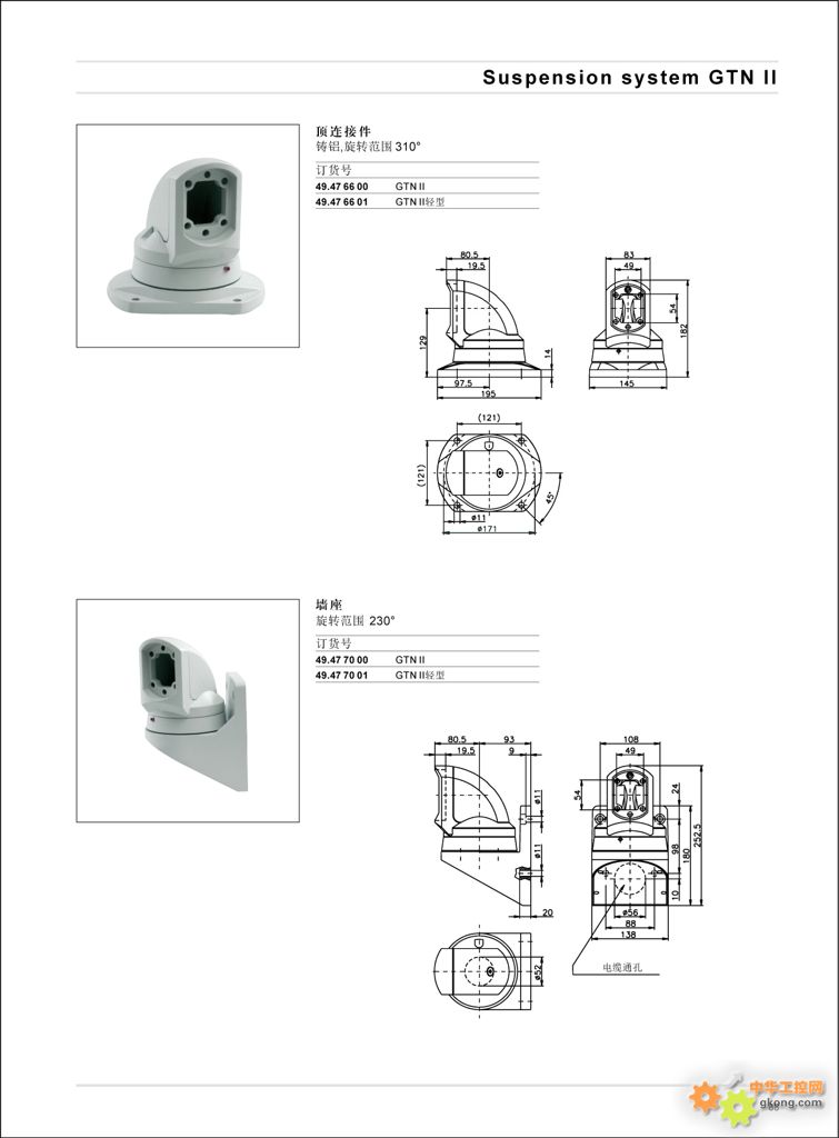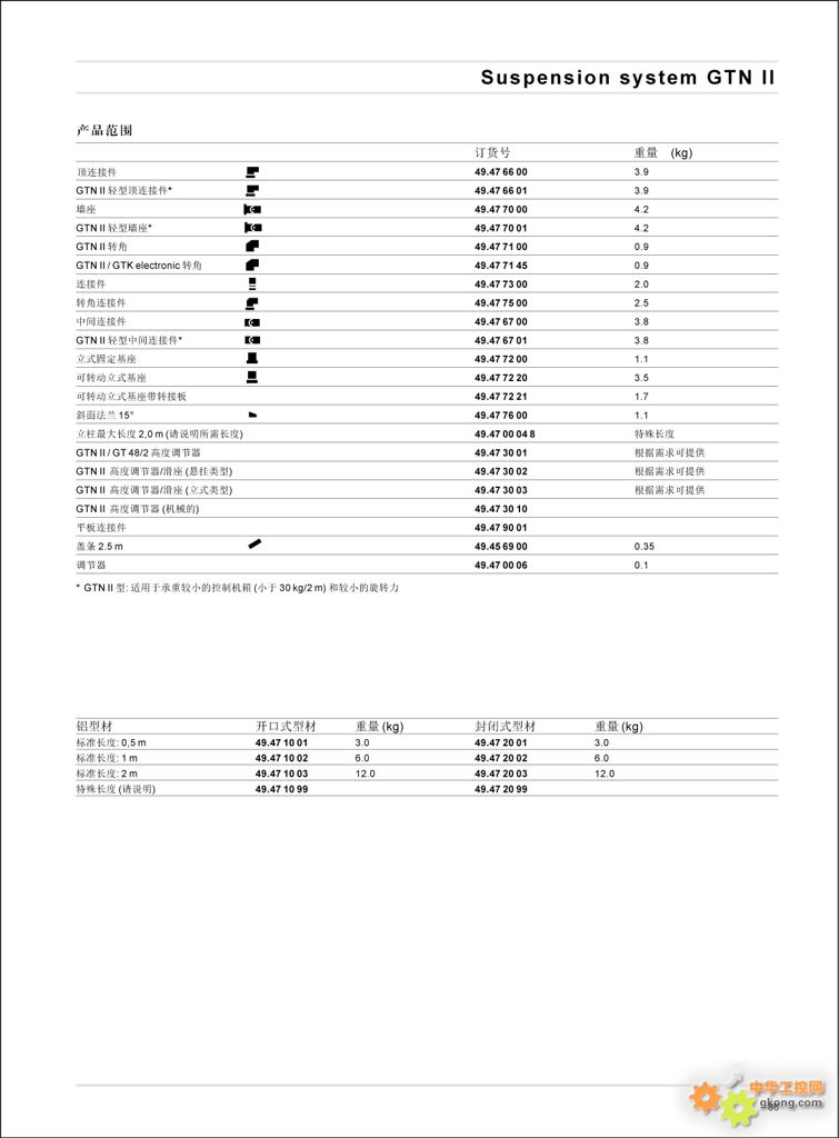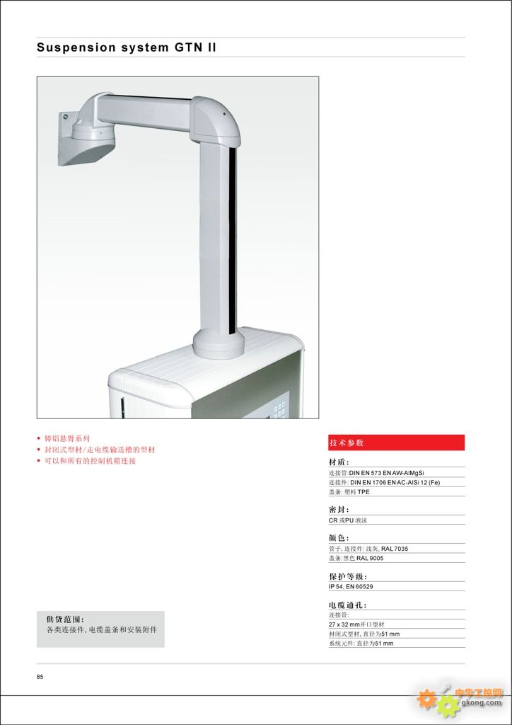 → Suspension system GTN II 帶開放式或封閉式電線輸送管的鋁制懸臂系列