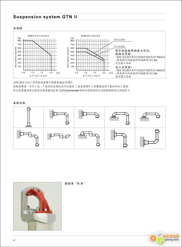 Suspension system GTN II 帶開放式或封閉式電線輸送管的鋁制懸臂系列
