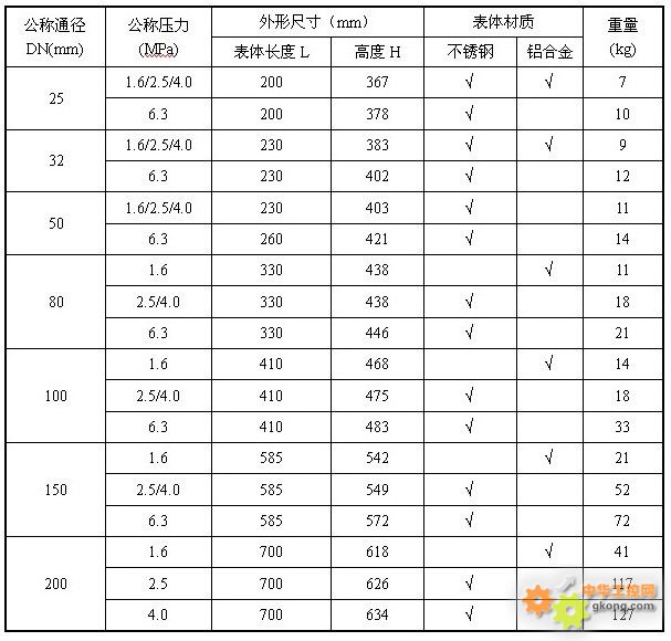 公稱壓力:1.6、2.5、4.0、6.3MPa