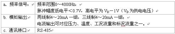 · 轉(zhuǎn)換器可輸出頻率脈沖、4~20mA模擬信號(hào),并具有RS485接口,可直接與微機(jī)聯(lián)網(wǎng),傳輸距離可達(dá)1.2km;