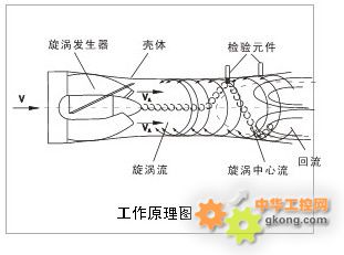 流量傳感器的流通剖面類似文丘利管的型線。在入口側(cè)安放一組螺旋型導(dǎo)流葉片,當(dāng)流體進(jìn)入流量傳感器時(shí),導(dǎo)流葉片迫使流體產(chǎn)生劇烈的旋渦 流。當(dāng)流體進(jìn)入擴(kuò)散段時(shí),旋渦流受到回流的作用,開始作二次旋轉(zhuǎn),形成陀螺式的渦流進(jìn)動(dòng)現(xiàn)象。該進(jìn)動(dòng)頻率與流量大小成正比,不受流體物理性質(zhì)和密度的影 響,檢測(cè)元件測(cè)得流體二次旋轉(zhuǎn)進(jìn)動(dòng)頻率就能在較寬的流量范圍內(nèi)獲得良好的線性度。信號(hào)經(jīng)前置放大器放大、濾波、整形轉(zhuǎn)換為與流速成正比的脈沖信號(hào),然后再 與溫度、壓力等檢測(cè)信號(hào)一起被送往微處理器進(jìn)行積算處理,最后在液晶顯示屏上顯示出測(cè)量結(jié)果(瞬時(shí)流量、累積流量及溫度、壓力數(shù)據(jù))。