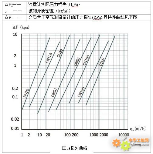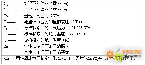 b. 當(dāng)已知被測(cè)流量為標(biāo)況條件下的體積流量時(shí),應(yīng)先將標(biāo)況體積流量QN換算為工況體積流量Qv (根據(jù)公式2),再按技術(shù)參數(shù)表中的流量范圍選取相應(yīng)的公稱通徑。
